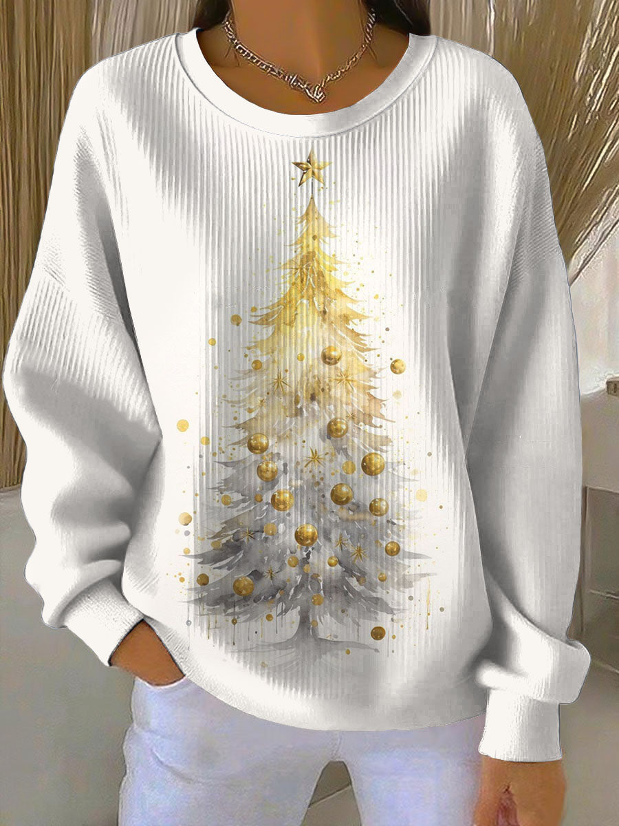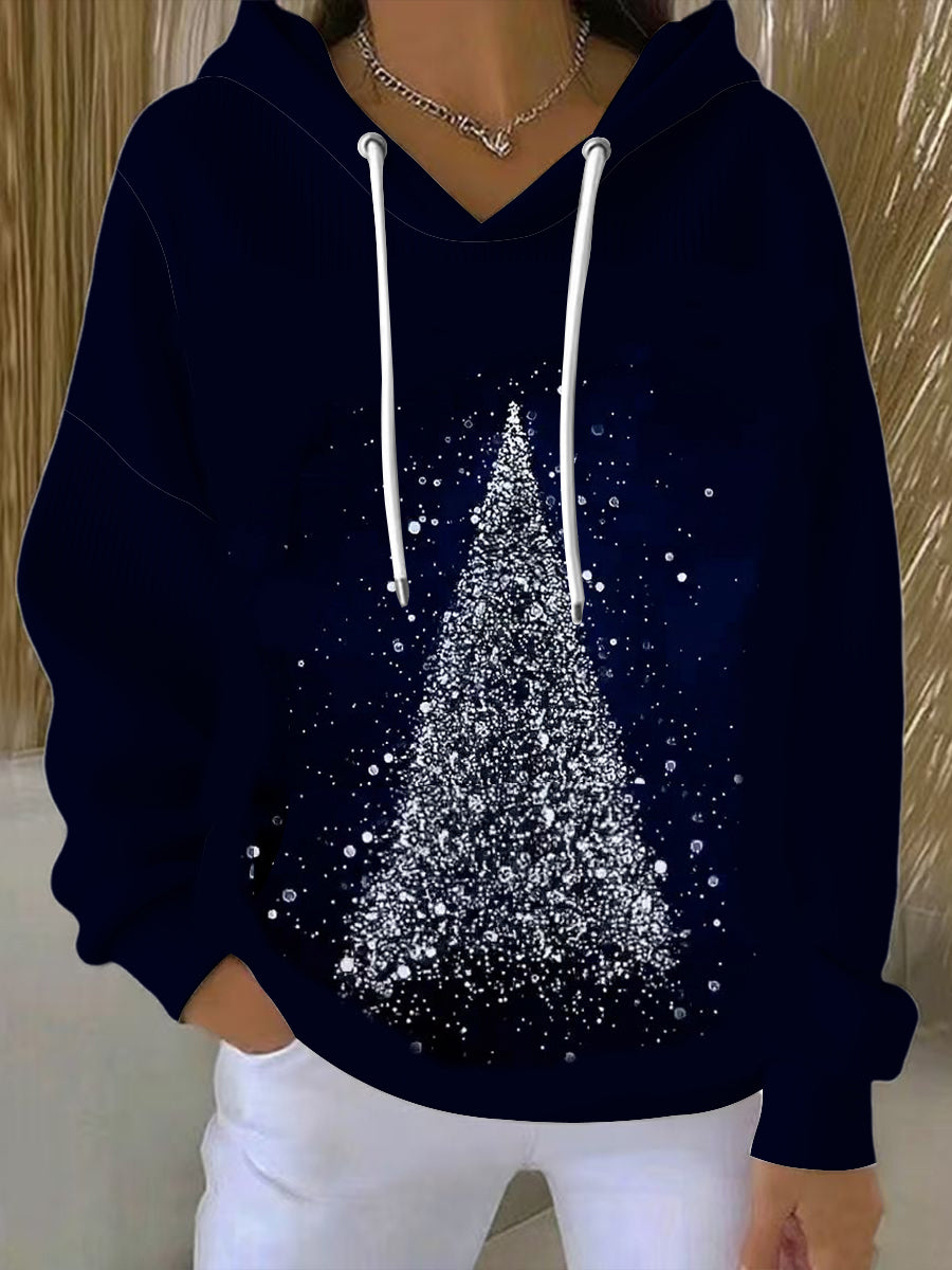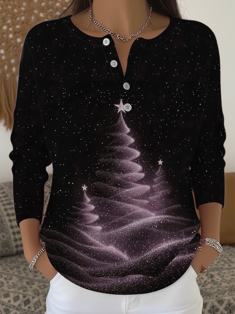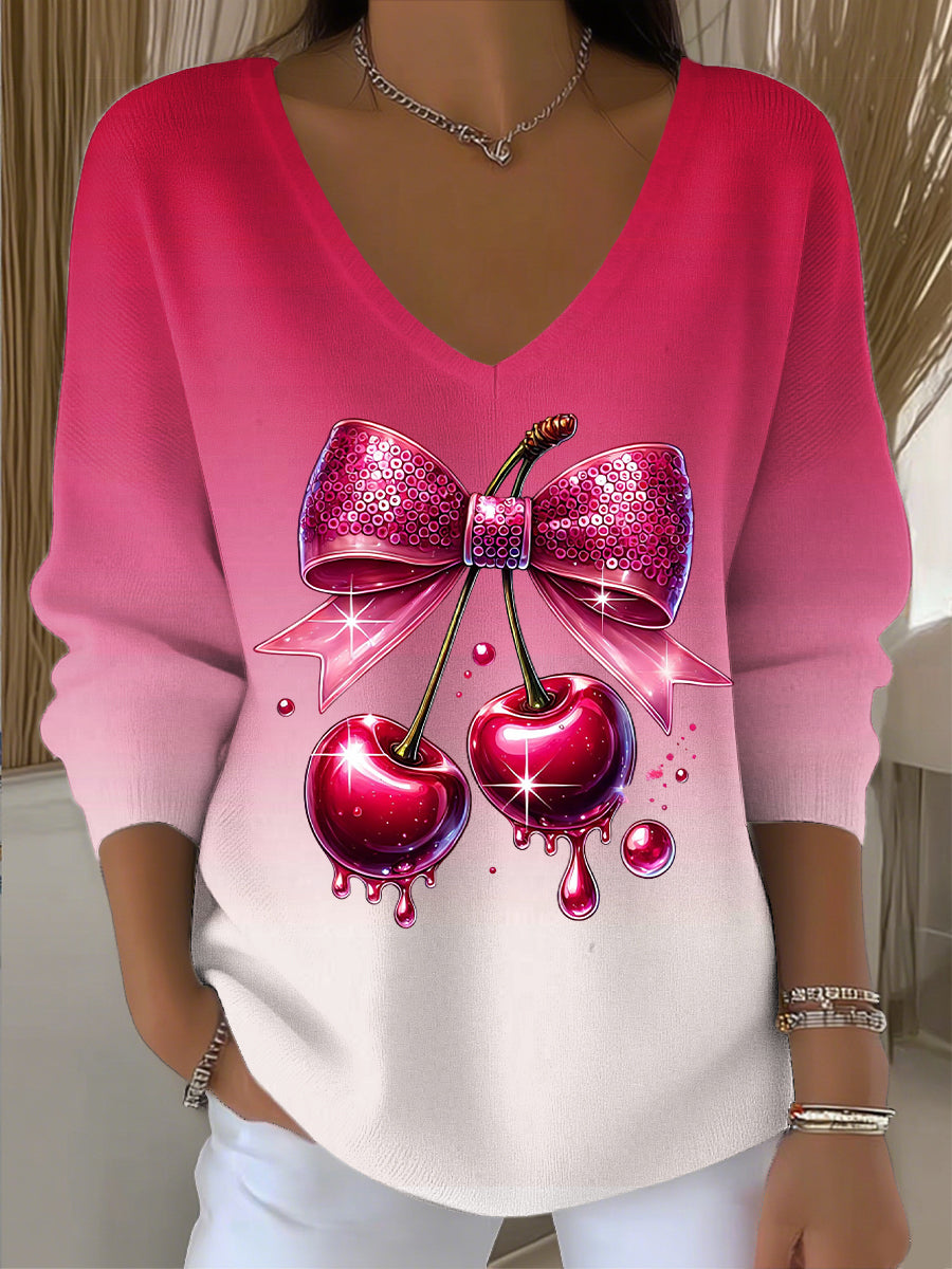 Дамски блестящ градиент коледно дърво v-врата пуловер
