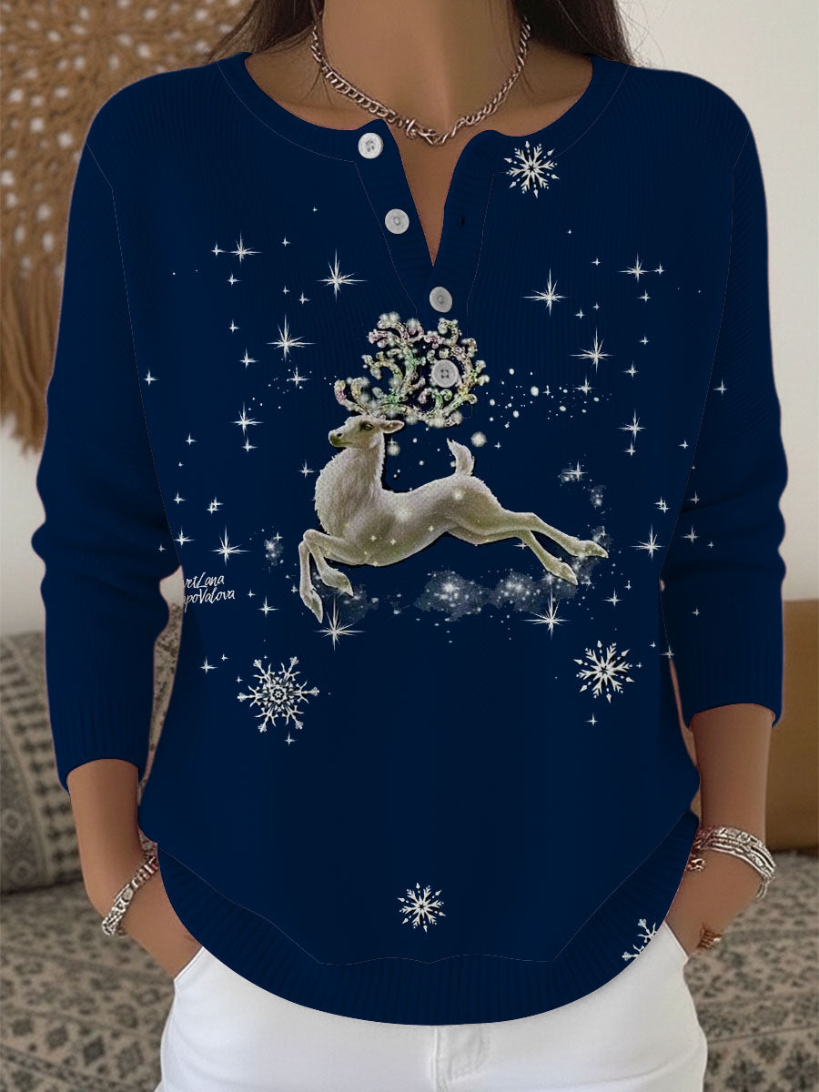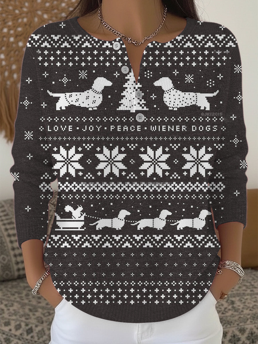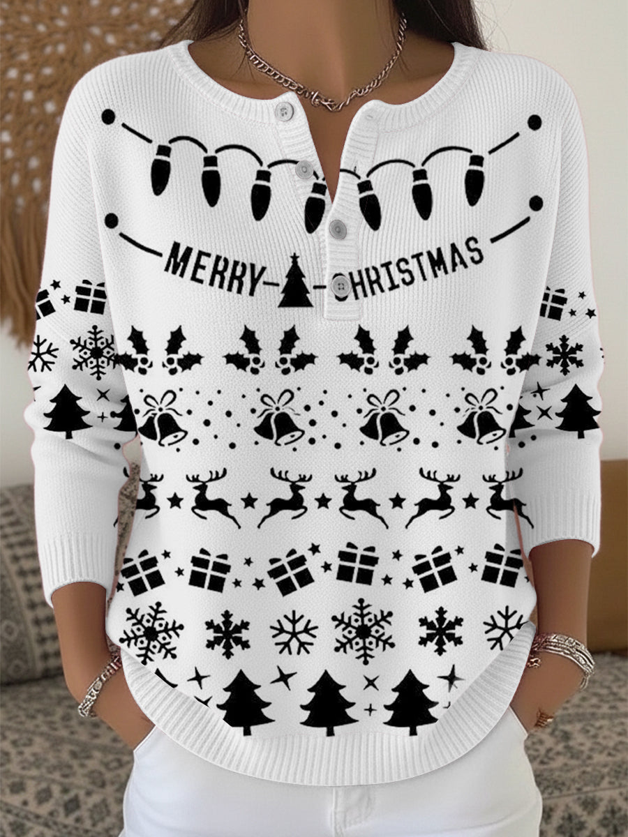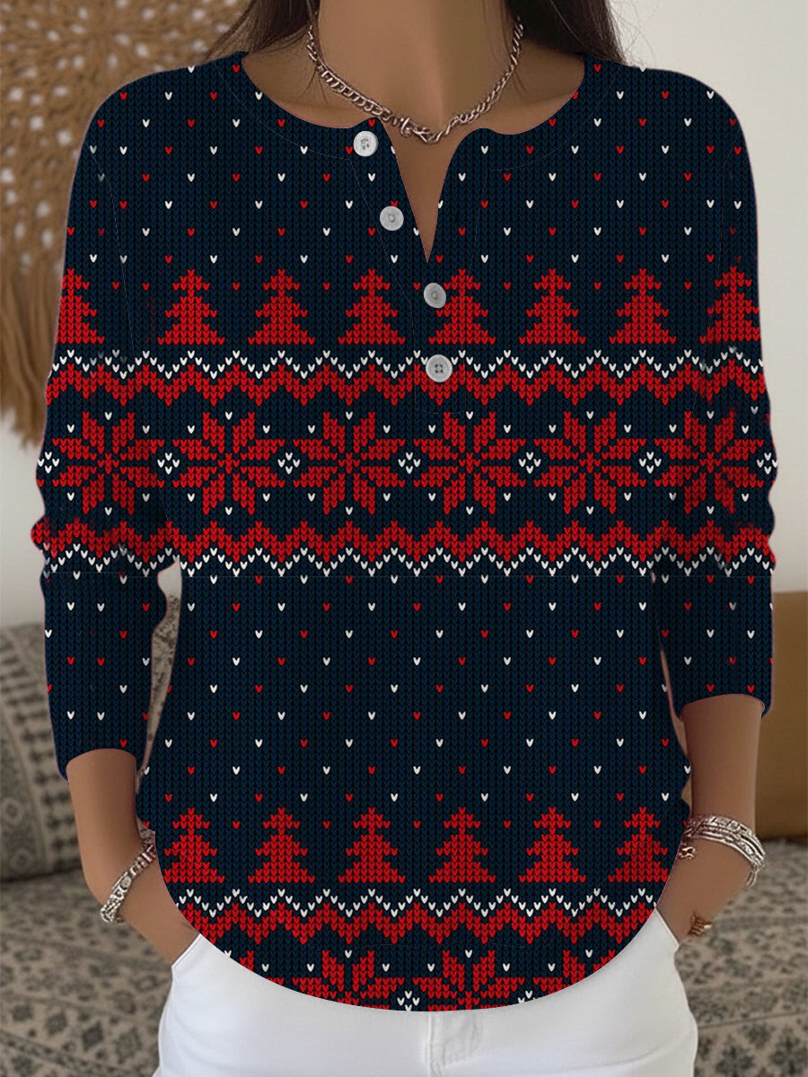 Дамски прекрасен празничен джинджифил хенли пуловер