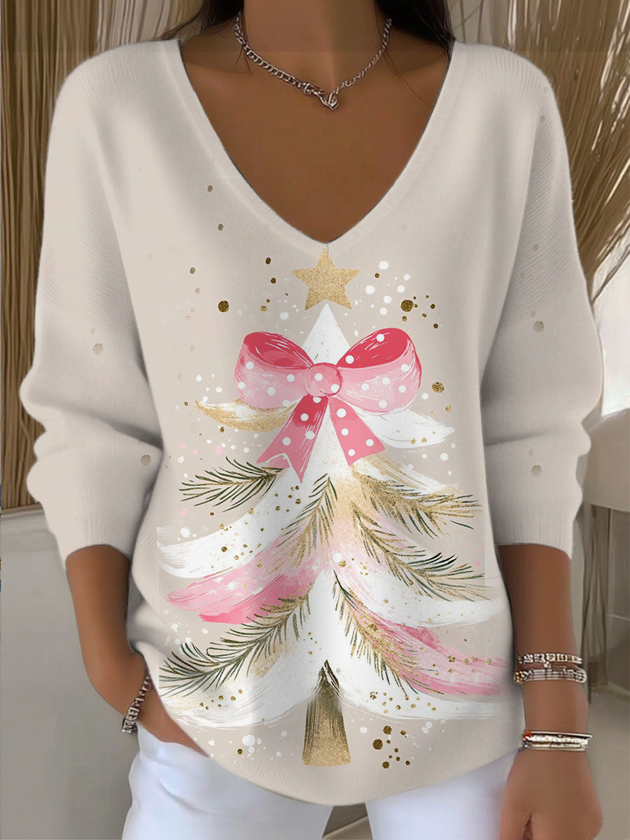 Дамски ослепителен вихър коледно дърво v-врата пуловер