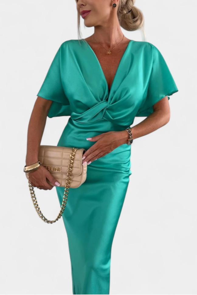Наталия - Касулна рокля с преден възел и V-образно деколте