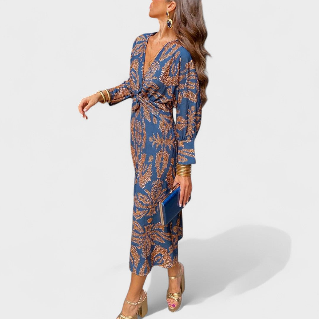 Бланка Макси Асиметрична Рокля с Вибрантен Узор