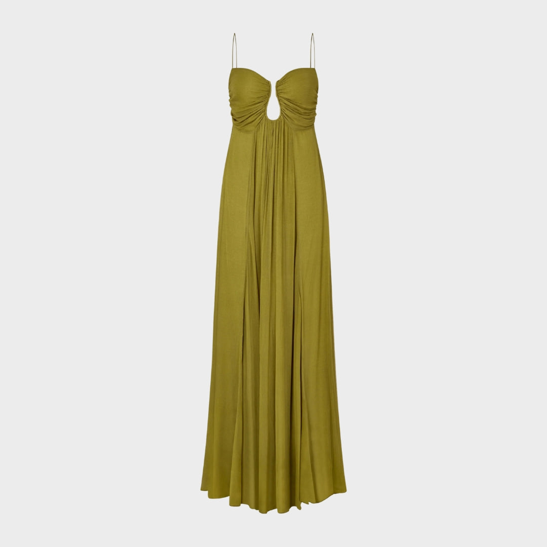 Тази макси рокля предлага елегантна силуета с удобен материал. Ключовият детайл добавя фин чар, перфектен за дневни и вечерни поводи.