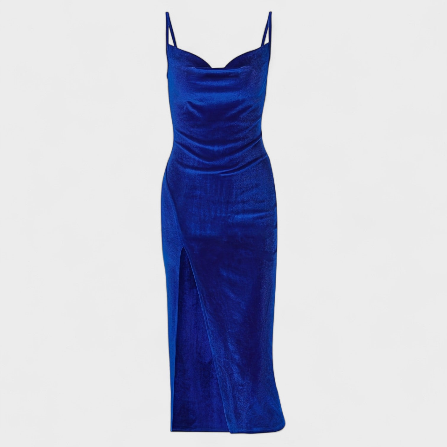 Рокля, която комбинира сексуалност и изтъкнатост във всяка извивка. Габриела е проектирана да бъде ваш съюзник в специалните нощи, благодарение на своя мек кадифе и деликатно драпирано деколте. Страничният разрез ѝ придава истински допир на смелост.