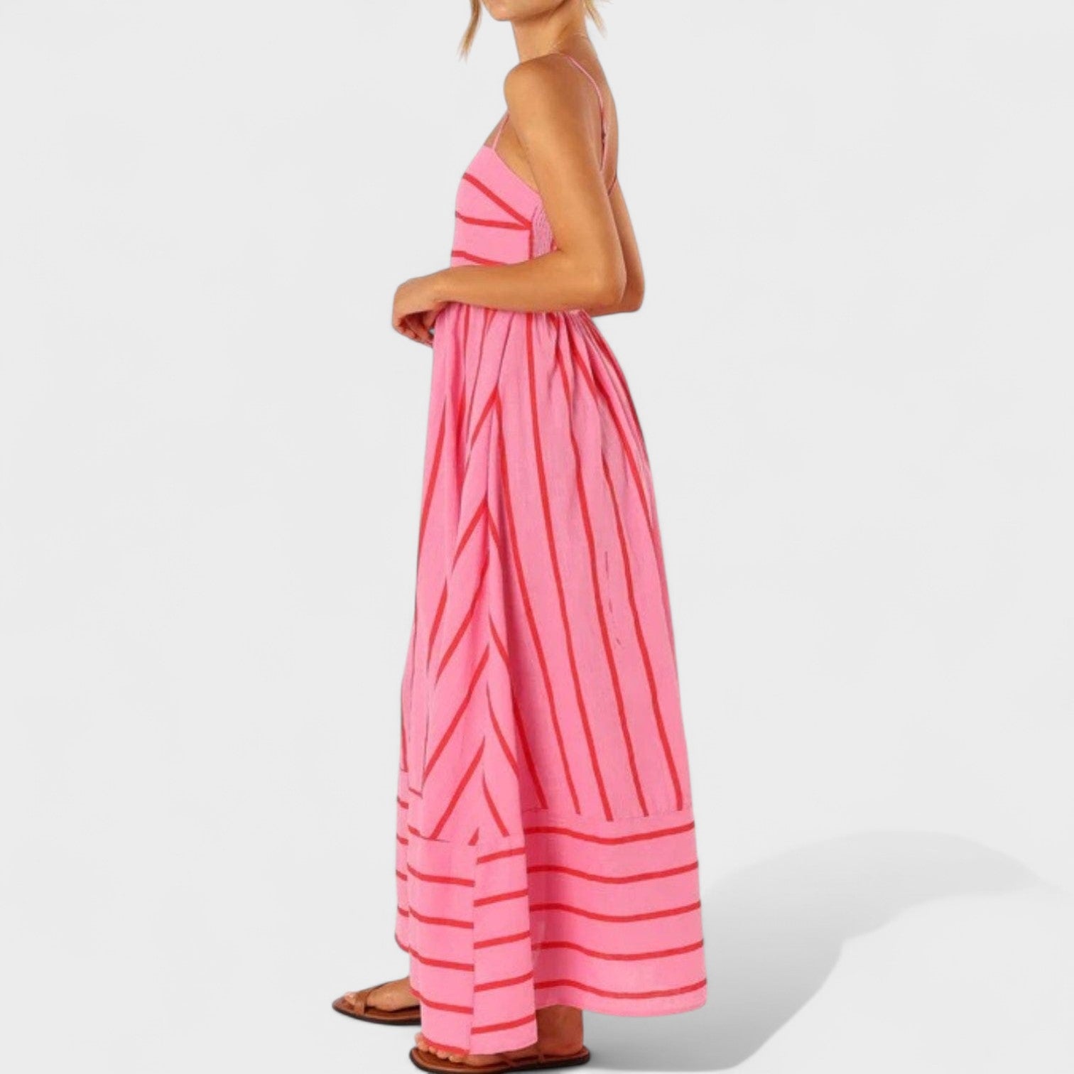 Перфектната смесица от средиземноморска свежест и отпусната елегантност. Роклята Изабел е вашият нов must-have за слънчеви дни, които заслужават да бъдат незабравими. От разходка при залез до обяд край морето, тази рокля ви следва със стил и свобода.