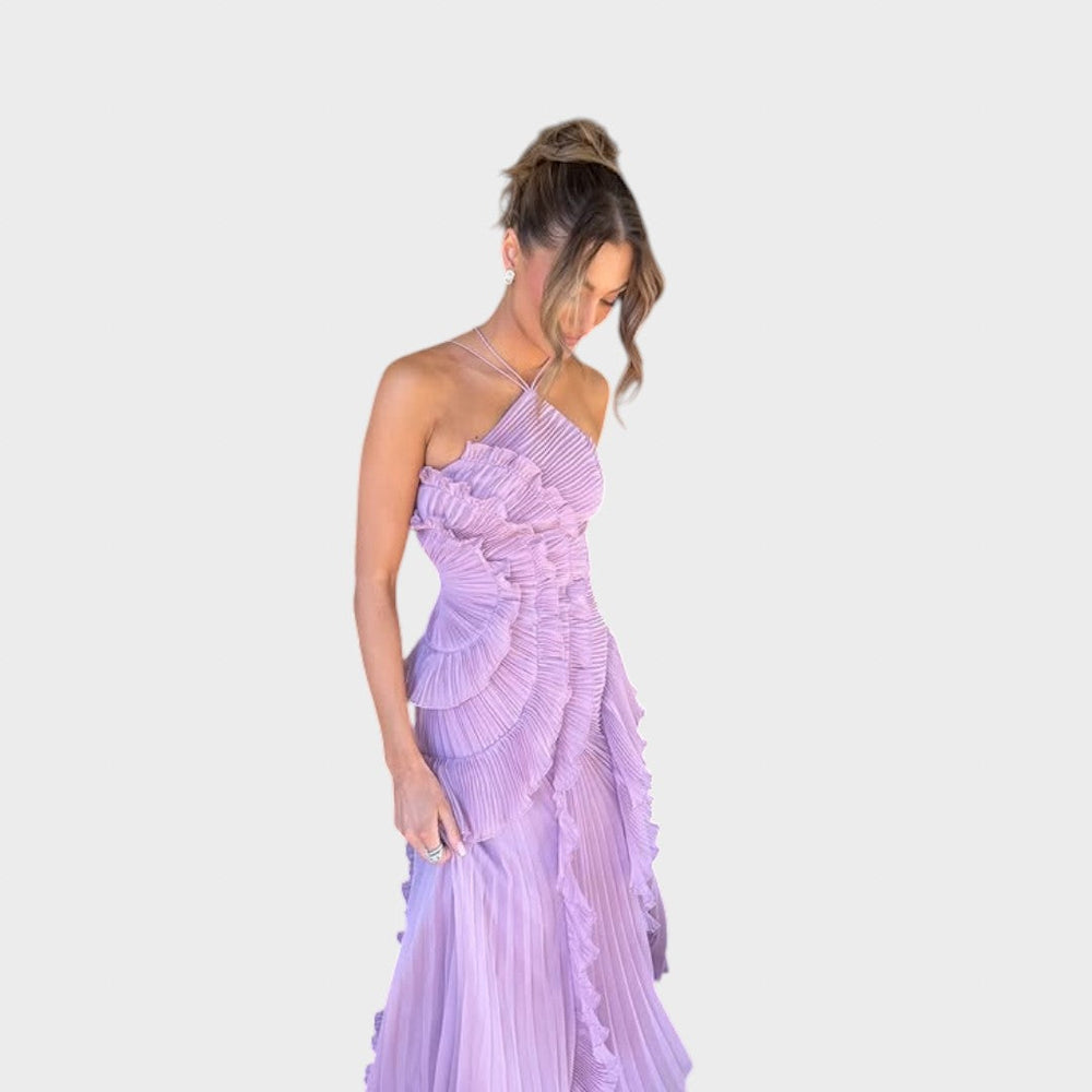 Нивес - Плисирана шифонена рокля с деколте във формата на сърце и оформен корсет