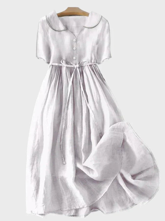 Тази нежна лилава рокля излъчва елегантност и романтика, идеална за всяка жена, която иска да подчертае своя стил с вечен вид. Минималистичният крой подчертава женствеността, докато коланът в талията деликатно акцентира на формата на тялото.
